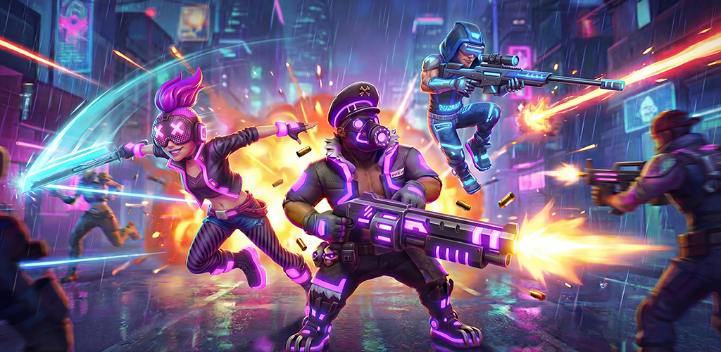 Top-down action shooter with competitive and fast-paced gameplay in a cyberpunk universe where skill is everything.